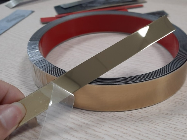 Loại la cuộn inox của PTM đặc biệt hơn khi có sẵn phần keo dán ở mặt phía sau giúp tiện lợi dễ dàng cho người thợ hơn như khi dán băng dính.