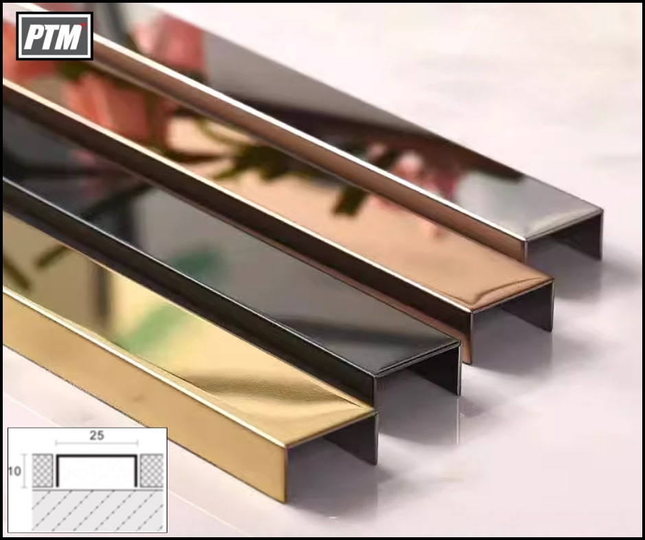 Nẹp inox U 25 sản xuất từ inox 304 cao cấp cho độ cứng và bền tốt. Sản phẩm có khả năng chịu được những môi trường có độ khắc nghiệt cao mà vẫn đảm bảo vẻ đẹp như mới. Với lớp mạ PVD ứng dụng những công nghệ mới mà các sản phẩm có nhiều màu sắc bắt mắt cũng như đảm bảo độ bền màu tốt.